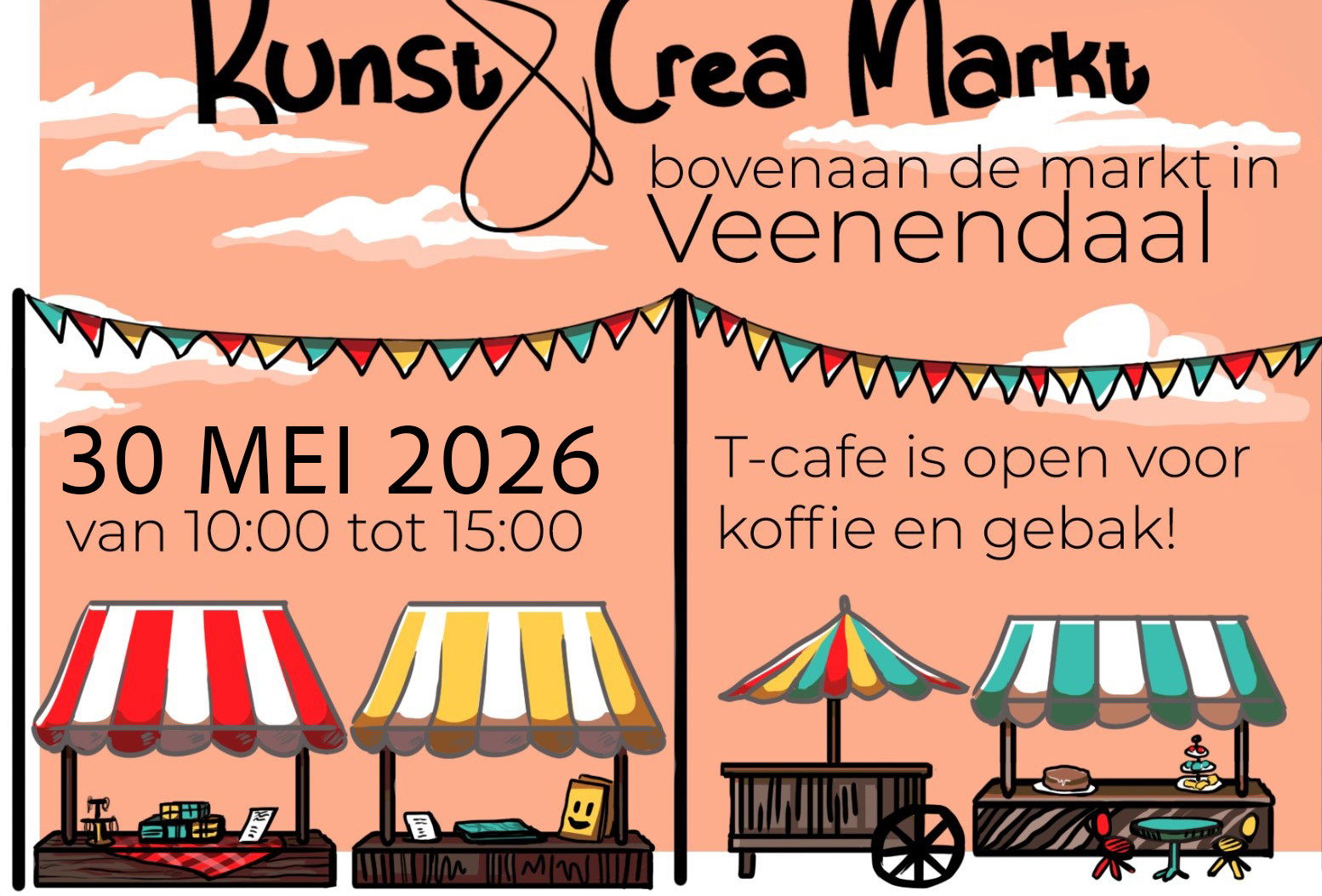 Zaterdag 30 mei 2026 organiseren we een Kunst- en Kreamarkt op het plein voor het T-cafΓ©.