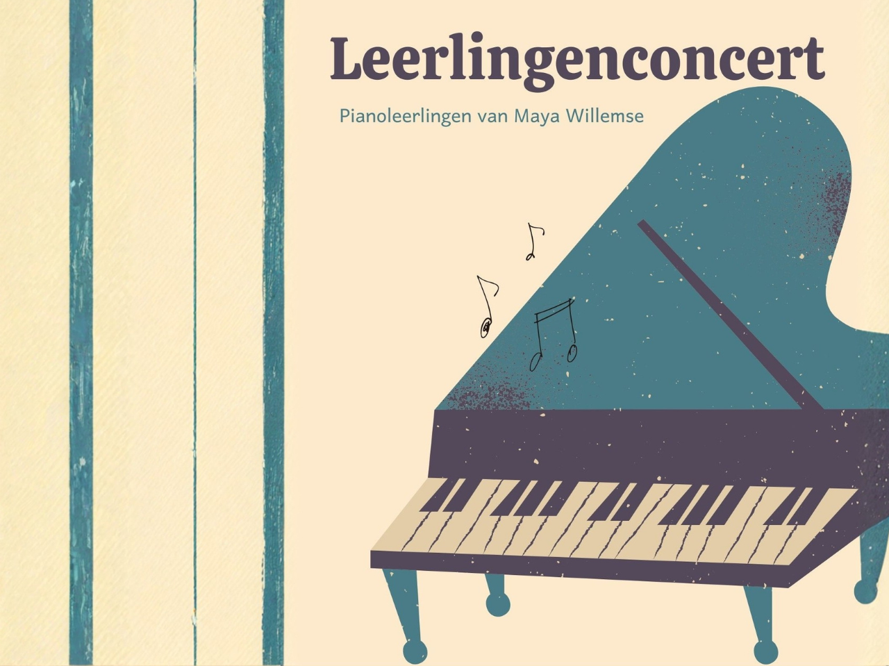 De leerlingen van pianodocent Maya Willemse geven een feestelijk leerlingenconcert in De Cultuurfabriek. Tijdens dit concert laten zij horen waar zij het afgelopen jaar aan hebben gewerkt.