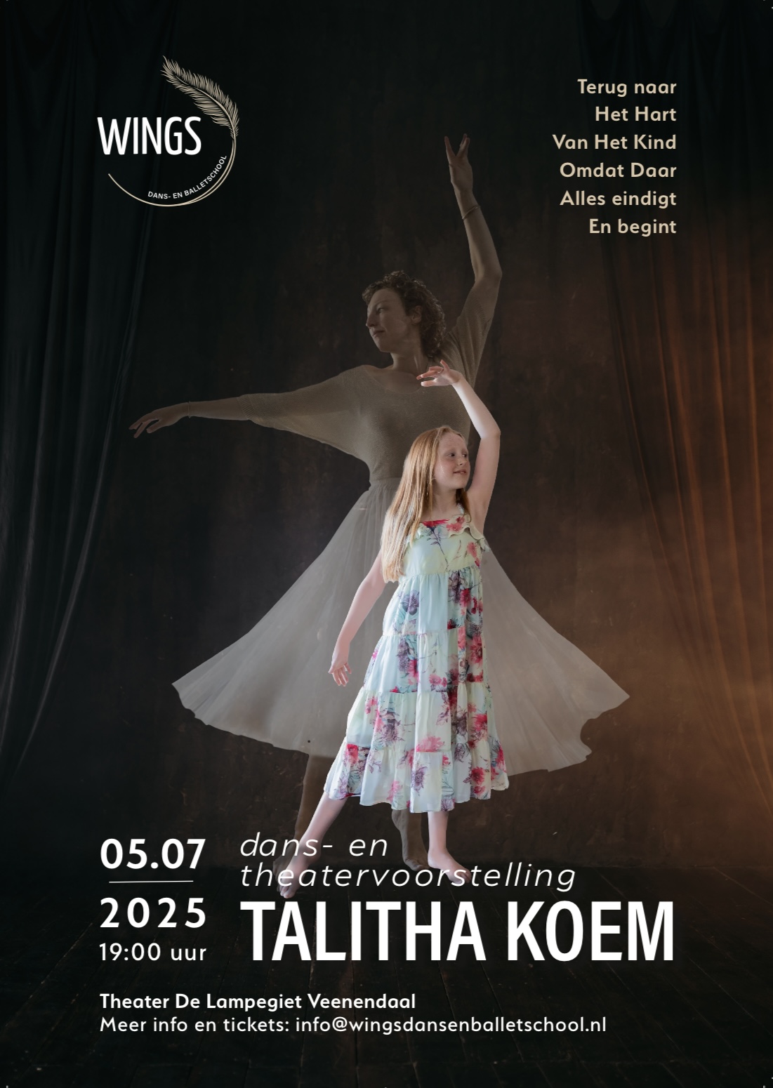 In de voorstelling Talitha Koem dansen en spelen alle leerlingen van Wings. Het gaat over het meisje Talitha die er aan herinnerd wordt dat ze een Kind van God is, en altijd zal blijven.